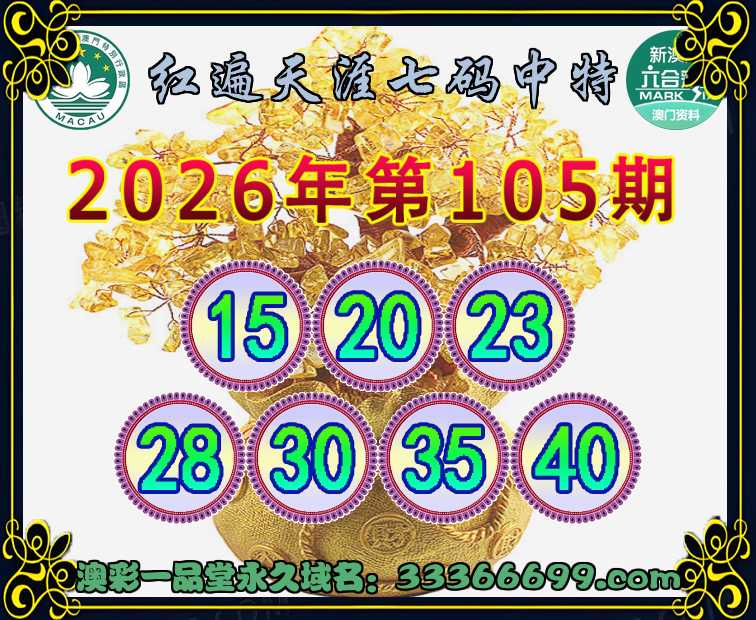 105期: 『红遍天涯』 七码中特【15.20.23.28.30.35.40】开:28