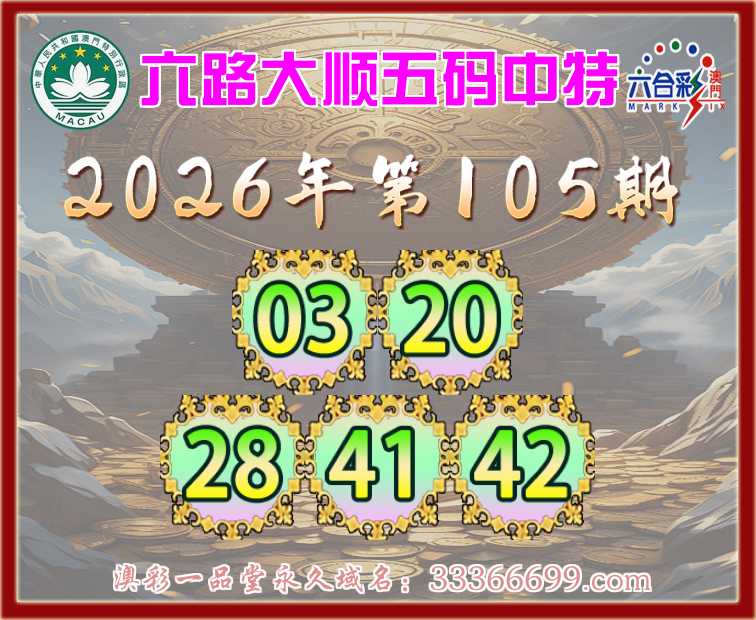 105期:【六路大顺】 五码中特【03.20.28.41.42】开:28